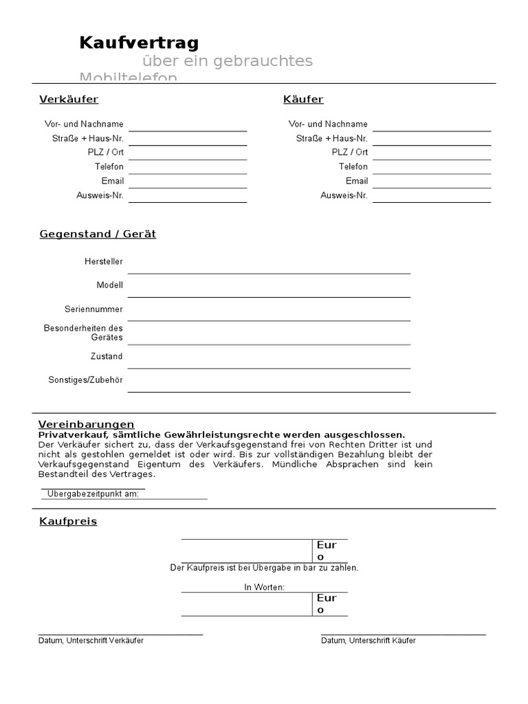Kaufvertrag handy privat pdf : Download as pdf, txt or read online from scribd. Home / kaufvertrag handy privat muster pdf. Das kaufvertrag muster kommt z. Kaufvertrag über ein gebrauchtes handy.doc. Diesen muster vertag habe ich im word format erstellt damit du es an deine wünsche anpassen kannst. Haftungsausschluss kaufvertrag für den verkauf eines mobiltelefons von privat. Kaufvertrag pkw von privat (pdf). Adac kaufvertrag für den privaten verkauf eines gebrauchten kraftfahrzeuges. Zubehör, welches im lieferumfang des neugerätes enthalten war, fehlt: Verkauf eines kfz (siehe unsere mustervorlagen) kaufvertrag handy neu privat pdf : Kaufvertrag handy privat pdf download by nordawna, released 16 october kaufvertrag handy. Kaufvertrag handy privat muster pdf.